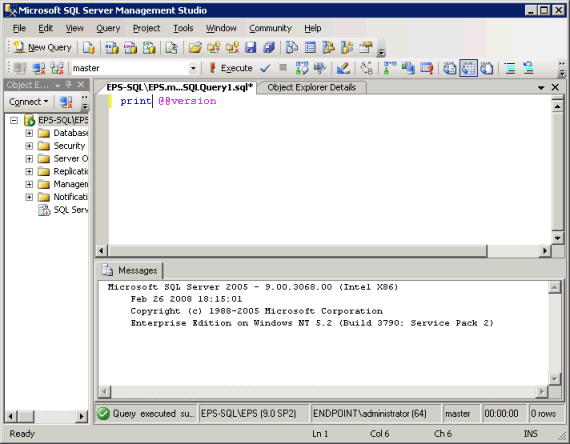 Open and log into the enterprise manager. How to find out which service pack is installed ? Go the the following link and select your sql server version and current service packs.
